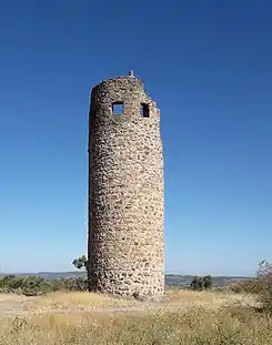 Torre simple en pequeña mampostería de piedra, presenta planta circular con unos cuatro metros de diámetro por doce metros de altura. A poco más de un metro del suelo en su pared una puerta en arco ojival, de estilo gótico, con acceso primitivo, se cree, por escaleras de madera desmontables. Los muros del oeste presentan una ruina parcial. En los restos se pueden ver tres pequeñas ventanas cuadrangulares. El interior de la torre estaba originalmente dividido en dos pisos, el inferior cubierto por una bóveda de piedra y el superior por vigas de madera, ahora desaparecidas. El acceso a los pisos se hace por escaleras de caracol, de piedra.