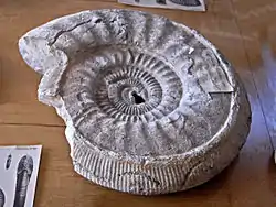 ![]() Fósil de Lithacoceras achilles de Francia, en exhibición en Galerie de paléontologie et d'anatomie comparée en París | ||