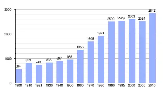 Gráfica de evolución demográfica de Atenango del Río entre 1900 y 2010 |