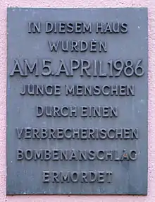 ![]() Edificio Roxy-Palast, donde la discoteca La Belle estaba localizada | ||