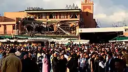 - «Morocco: Marrakesh bomb strikes Djemaa el-Fna square». BBC News. 28 de abril de 2011. Archivado desde el original el 16 de julio de 2011. Consultado el 2 de agosto de 2011.