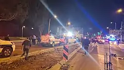 Los terroristas atacaron por la noche una parada de autobús cerca de un grupo de restaurantes. Equipados con rifles de asalto, los terroristas dispararon deliberadamente contra civiles y policías, matando a dos policías de frontera de 19 años.[4] Según el Magen David Adom,[5] diez personas más resultaron heridas, incluidos tres policías. Dos de los heridos sufrieron heridas graves. El ataque terminó después de que la policía neutralizara a los terroristas.[3]