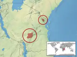 Se encuentra en las montañas Usambara y Udzungwa en Tanzania.[3] Probablemente también se encuentre en las montañas Uluguru.