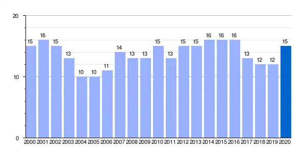Gráfica de evolución demográfica de Atiega[1] entre 2000 y 2020 |