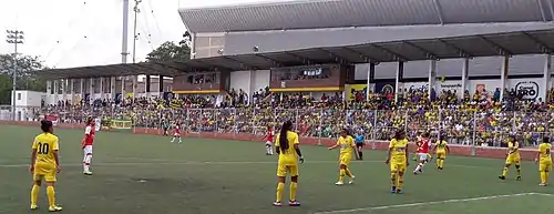 A pesar de no jugar en el estadio principal de la ciudad como lo hace la mayoría de equipos del fútbol femenino en Colombia, la rentabilidad en taquilla, las dimensiones e infraestructura de la cancha se prestan para disputar los encuentros oficiales de la Liga Profesional Femenina. De tal forma, 'las auriverdes' no han jugado hasta la fecha ningún encuentro en el Estadio Alfonso López, como sí lo hace el equipo profesional masculino.