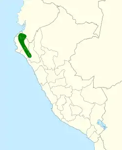 Se encuentra únicamente en los bosques tropicales de Ecuador y el noroeste de Perú.