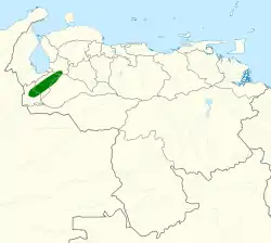 La especie es endémica de las regiones montañosas de los Andes, en los estados de Mérida y el este de Táchira, en el oeste de Venezuela.[3] A menudo es considerada como subespecie del gorrión montés bigotudo (A. albofrenatus).