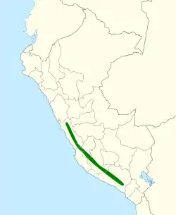 Su hábitat natural son los matorrales de montaña a lo largo de la vertiente oeste de los Andes del suroeste de Perú, entre los 2100 y 4000 m. Bastante común en el centro de Perú, pero se vuelve menos común hacia el sur.