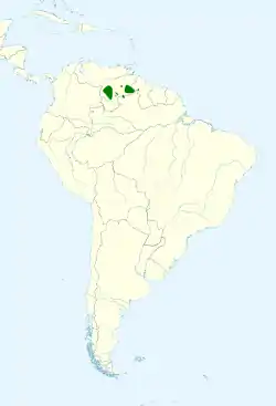 Vive en los matorrales de arbustos del borde del bosque húmedo de suelo arenoso, en los tepuyes, entre los 1.000 y 2.500 m de altitud.[2]