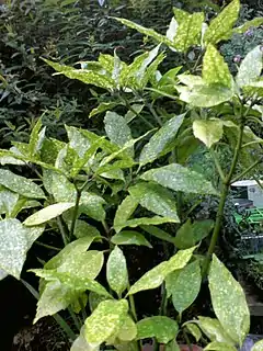 El laurel moteado (Aucuba japonica) es una especie de planta fanerógama de la familia Garryaceae.