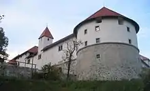 El castillo de Auersperg, construido en forma de triángulo macizo en la meseta de una ladera boscosa que desciende con fuerza hacia el oeste, se encuentra en la Baja Carniola, en el municipio de Velike Lašče, a unos 25 km al sureste de Liubliana, cerca de la carretera que conduce desde allí a Kočevje. Su predecesor fue el castillo del Bajo Auersperg (en alemán: Untere Burg Auersperg) , también llamado Viejo Auersperg (Altauersperg), que se encontraba en un afloramiento rocoso ligeramente más bajo que el nuevo edificio. No hay pruebas documentales de cuándo se construyeron los dos castillos. En el poderoso bastión, la llamada Torre del Buey (en alemán: Ochsenturm), en la parte este del castillo superior, hay una losa de piedra con la siguiente inscripción: