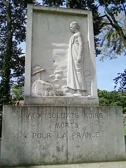 "Aux soldats noirs morts pour la France". Monumento a los muertos de la Primera Guerra Mundial (1914-1918) , en el Jardín Tropical de París.