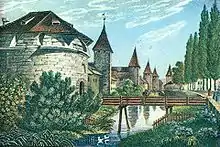 - Gebrüder Dürst. /befestigungen/stadtbefestigung_3_links/augustinerturm/augustinerturm.html «Augustinerturm» (en alemán). Gang dur Alt-Züri. Consultado el 17 de enero de 2015.