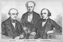 ![]() Augustus Mongredien (derecha) con George Walker (centro) y William Lewis (izquierda) | ||