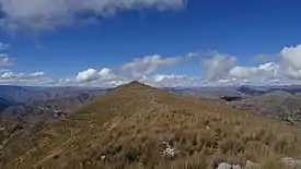 ![]() Cumbre alargada del cerro Auquipincush apuntando hacia el sureste. | ||