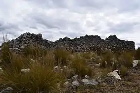 En la cima del cerro se encuentran 2 ciudades construidos a base de piedras, LA PRIMERA es Yana Marca que esta construido con piedras negras el cual tiene un muro perimétrico por todo el sitio de influencia Chavín, EL SEGUNDO es Yuraj Marca es una ciudad con construcciones de piedra blanca, habitaciones pequeñas de influencia Chinchaysuyo el cual también tiene muro perimétrico que rodea todo el sitio arqueológico.