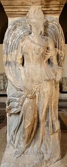 La velificatio, una prenda de vestir ondulante que forma un arco suspendido, es el atributo principal por el cual un aura puede ser identificada en el arte. Un par de velificantes (figuras enmarcadas por una velificatio) que aparecen en el Altar de la Paz de Augusto han sido identificadas a veces como auras.[3] Plinio describe estatuas de Auras velificantes sua veste, "haciendo una vela con su prenda", en el Pórtico de Octavia en Roma.[4] Las auras puede parecerse a las nereidas, de las que se distinguen principalmente por la ausencia de imágenes marinas.[5]