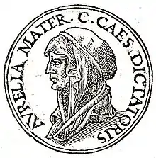 ![]() Efigie de Aurelia en una medalla del Promptuarii iconum insigniorum de Guillaume Rouillé (1558) | ||