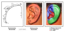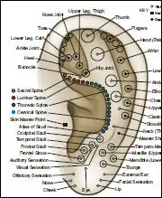 El francés Dr. Paul Nogier entre 1954 y 1956 fue el primero en crear una cartografía detallada del pabellón auricular.[4] Está basada en la idea de que el pabellón auricular es una representación completa del resto del cuerpo.[5]