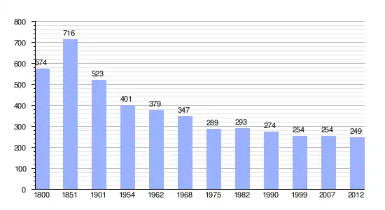 Gráfica de evolución demográfica de Aussurucq entre 1800 y 2012 |