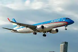 ![]() Embraer 190 de Austral aterrizando en el Aeroparque Jorge Newbery | |||||