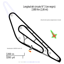 - Número 3: Circuito completo ampliado, de 2.680 metros de recorrido, al que se reemplaza Montlhéry por el Cajón.