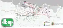 Mapa de servicios de transporte colectivo en el área metropolitana de San Juan (2015).