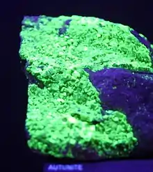 La autunita es muy apreciada por los coleccionistas de minerales por su color y fluorescencia bajo la luz ultravioleta.