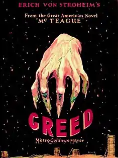 Avaricia (título original en inglés: Greed) es una película muda estadounidense de 1924 dirigida por Erich von Stroheim, basada en McTeague, una novela de Frank Norris publicada en 1899. Está protagonizada por Gibson Gowland en el papel de Dr. John Mcteague, ZaSu Pitts como su esposa Trina Sieppe y Jean Hersholt como el amigo y posterior enemigo de McTeague, Marcus Schouler. La película cuenta la historia de McTeague, un dentista de San Francisco, quien se casa con la prometida de Schouler, su mejor amigo, Trina. Poco después de su compromiso, Trina gana un premio de lotería de $5,000, una suma sustancial para su época. Schouler informa celosamente a las autoridades que McTeague había estado practicando odontología sin licencia, lo que ocasiona que McTeague y Trina se empobrecieran. Durante su miseria, McTeague se vuelve un alcohólico violento y Trina se obsesiona ávidamente con sus ganancias, negándose a gastarlas, pese a lo pobre que ella y su esposo se han convertido. Finalmente McTeague asesina a Trina por el dinero y escapa hacia el Valle de la Muerte, donde Schouler lo atrapa para una confrontación final.
