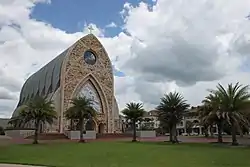 La ciudad fue planeada con la gran iglesia Ave María en el centro, cuyo fachada muestra la escultura del escultor Márton Váró de 9 metros de altura de la Anunciación, que representa al Arcángel Gabriel saludando a la Virgen María con las palabras "Ave María".[10][11] La escultura "Buen Pastor" de Váró también se presenta dentro del Oratorio, también tallada en mármol de la Cueva Michelangelo en Carrara, Italia.[12]