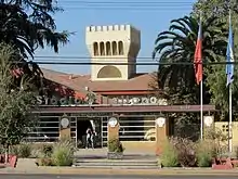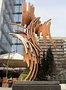 - Acceso a la estación El Golf, flanqueado por las esculturas de Landerretche