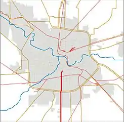 Ya que se ubica dentro del polo universitario, y funciona como acceso a ella, en sus primeros metros de recorrido pasan diversas líneas de colectivos (marcados con *):