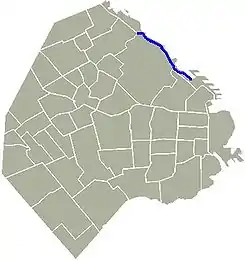 Lugares que atraviesa | Puerto de Buenos Aires, Circuito KDT Club de Pescadores, Aeroparque Jorge Newbery, Parque de la Memoria de Buenos Aires | |