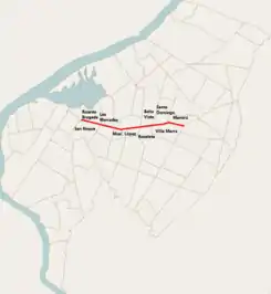 Barrios que atraviesa | Manorá, Villa Morra, Santo Domingo, Bella Vista, Recoleta, Mariscal López, Las Mercedes, Ricardo Brugada y San Roque. | |