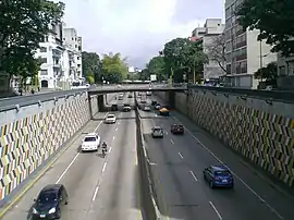 Según la arquitecta María Boccalandro, el diseño de dos niveles de la avenida Libertador responde a la intención de que el corredor cumpliera dos funciones: el subterráneo o, zona deprimida, como vía expresa que sirviera de conexión rápida entre los extremos –este y oeste– de la ciudad; y el nivel de la superficie para que cumpliera el carácter urbano de la vía. Allí se alojarían los servicios propios de una urbe, y tanto conductores como peatones pudieran tener acceso a las parcelas que se establecieron alrededor de esa arteria.[1]