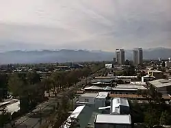 ![]() Vista aérea de la avenida. Al fondo, las Torres de la Alameda. | ||