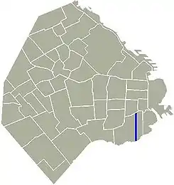Finaliza en la Avenida Don Pedro de Mendoza a orillas del Riachuelo a metros del Nuevo Puente Pueyrredón, y allí se encuentra el Servicio de Hidrografía Naval.
