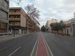![]() La avenida de Orihuela en diciembre de 2021. Ciudad de Asís a la izquierda, Florida Baja a la derecha. | ||