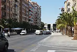 ![]() Avenida de la Estación en julio de 2013. Al fondo, la estación de Alicante-Terminal. | ||