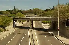 ![]() Vista de la avenida del Planetario hacia el este, con el parque Tierno Galván al fondo (se observa la boca suroeste del túnel bajo el parque). | ||