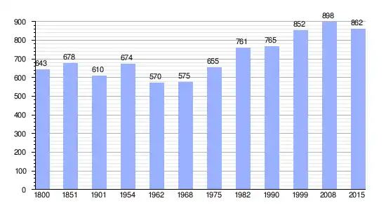 Gráfica de evolución demográfica de Avernes entre 1800 y 2015 |