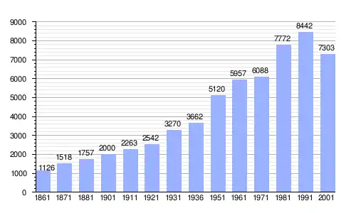Gráfica de evolución demográfica de Avetrana entre 1861 y 2001 |