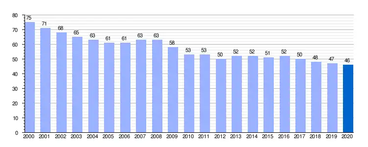 Gráfica de evolución demográfica de Aviñante de la Peña entre 2000 y 2020 |