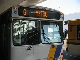 - LAX Shuttle: G (servicio a las terminales de LAX 1-8 y la Terminal Internacional Bradley vía el nivel inferior de World Way.)