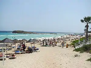 De las 27 playas de la localidad, 14 han sido galardonadas con la bandera azul de la UE por su nivel de limpieza y sus instalaciones, más que cualquier otro resort de la isla.[6][7] Chipre con 53 playas con bandera azul, tiene tres récords: