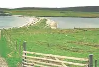 A veces, el término "ayre" se utiliza indistintamente como el tómbolo (la estrecha franja de tierra) asociado.[3] Los "ayres" están comúnmente asociados con las islas del Norte de Escocia (islas Orcadas e islas Shetland). El único ayre artificial, hecho por el hombre, en las islas Orcadas es el Ayre de Cara en South Ronaldsay.[4]