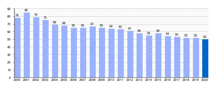 279 | 302 | 307 | 256 | 266 | 262 | 255 | 177 | 88 | 79 | 85 | 55 |