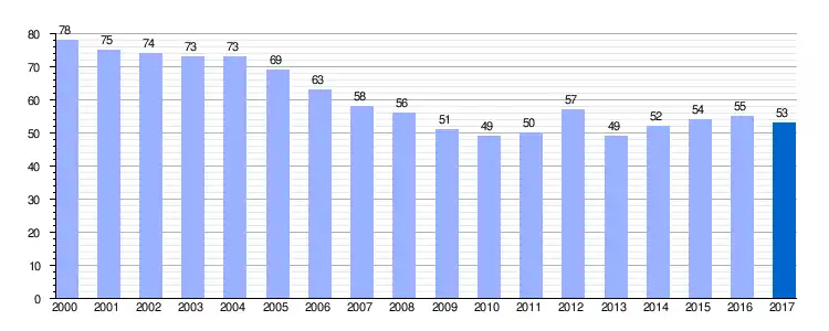 Gráfica de evolución demográfica de Ayuelas entre 2000 y 2017 |