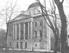 En un esfuerzo por trasladar las funciones gubernamentales de la ciudad y el condado fuera del edificio del capitolio estatal, la ciudad compró un terreno para construir en 1832. Eligieron un sitio frente a la plaza pública frente al capitolio, en Eagle Street y en el extremo este de Lion Street (más tarde rebautizada como Washington Avenue); la tierra se compró a la iglesia de San Pedro de 10 295 dólares (267 000 en dólares actuales).[14][15] El diseño del nuevo ayuntamiento fue el resultado de un concurso, que fue ganado por el arquitecto de Albany Philip Hooker y el arquitecto de Boston John Kutts. Hooker se encargó de integrar los componentes de las propuestas de ambos arquitectos en un diseño coherente.