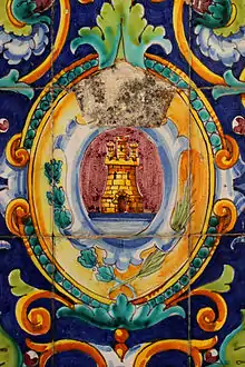 Escudo de Algeciras en la Plaza Alta cuya corona real fue cincelada en abril de 1931 por un operario municipal tras la proclamación de la Segunda República.